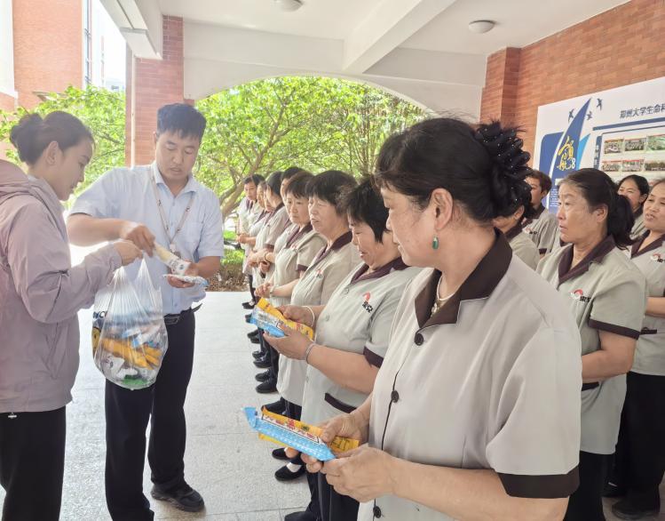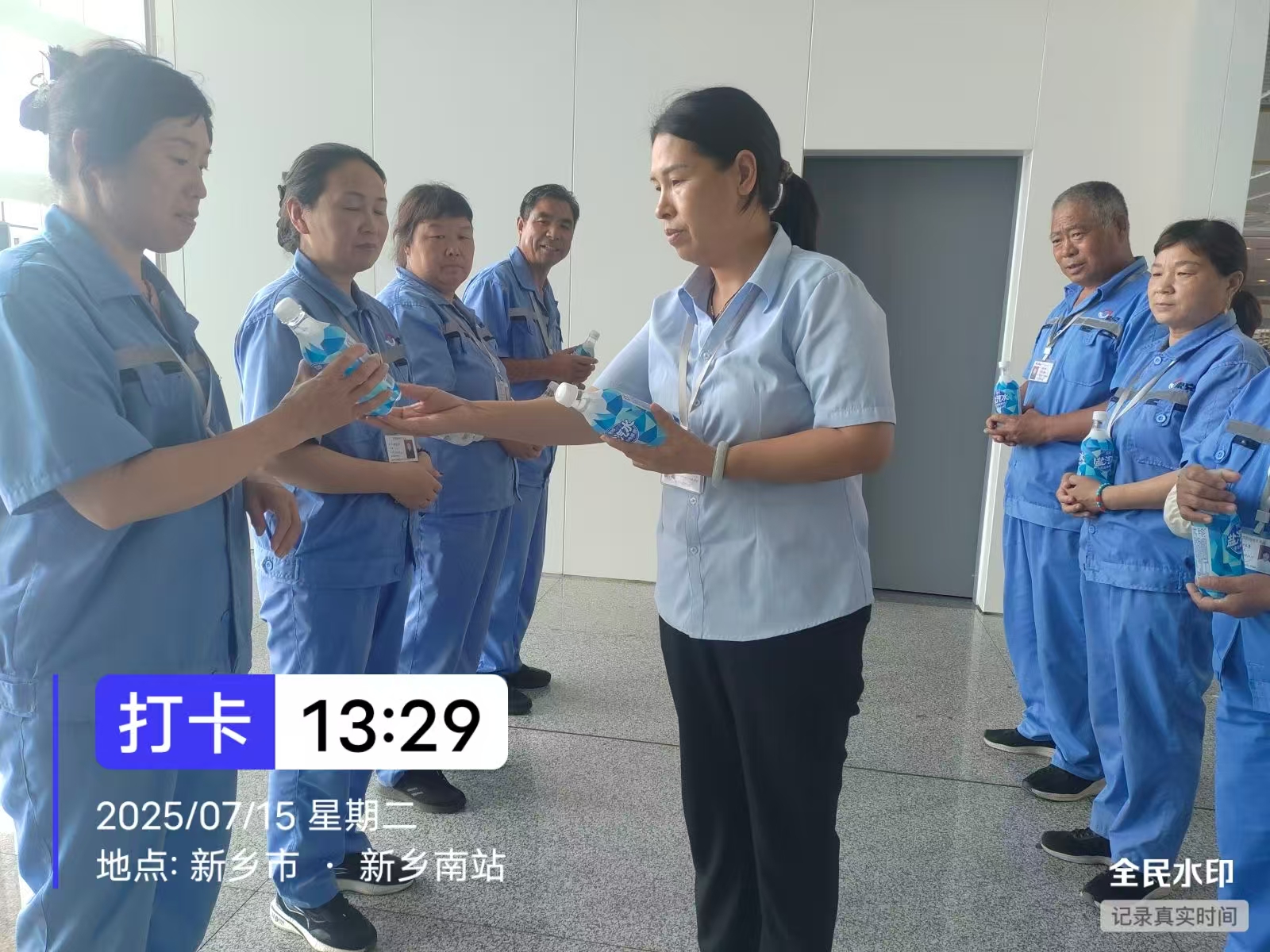 为了切实做好一线员工防暑降温工作,保障员工身心健康,新利服务各火车站点、郑州大学、贾庄悦润府、湖畔小城、保利大都会二期、英地天骄华庭等多项目开展主题为“全方位守护、撑起清凉伞”的员工关怀活动,为奋战在高温下的一线员工送去夏日清凉。